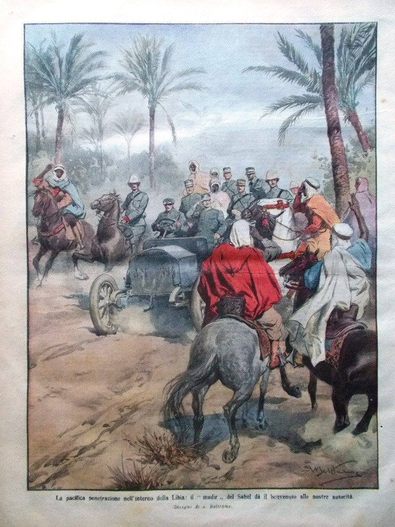 La pacifica penetrazione nell'interno della Libia: il "mudir" del Sabel da il benvenuto alle nostre autorità (Achille Beltrame)