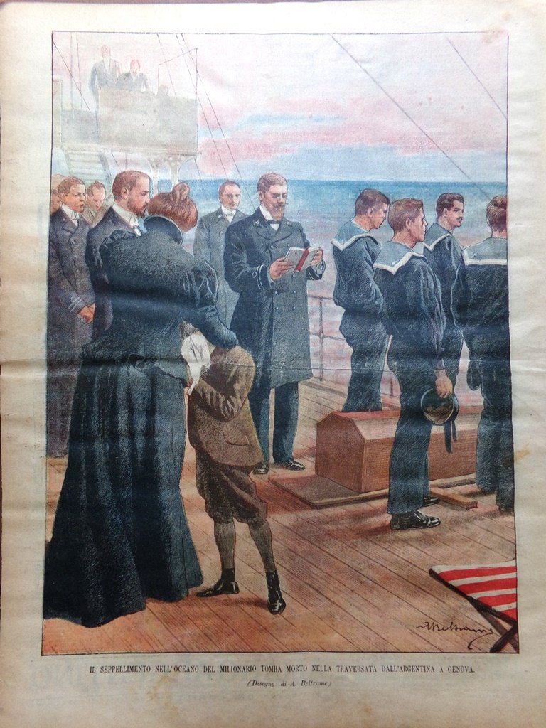 Il seppellimento nell'oceano del milionario Tomba morto nella traversata dall'Argentina a Genova (Achille Beltrame)