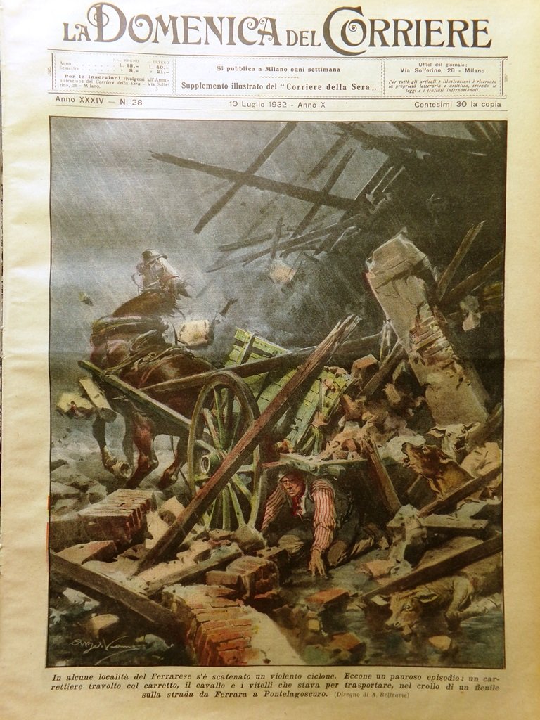 La Domenica del Corriere 10 Luglio 1932 Ciclone Ferrara Leonardo da Vinci Treni