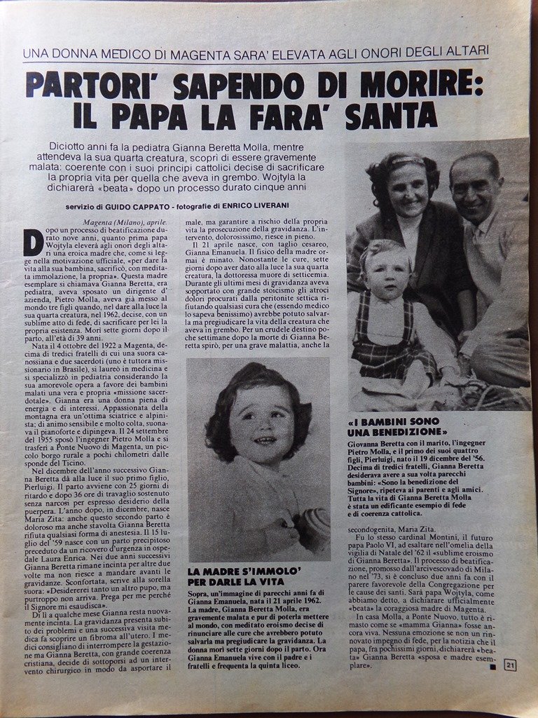 Partorì sapendo di morire, Gianna Beretta Molla. Il Papa la farà santa.