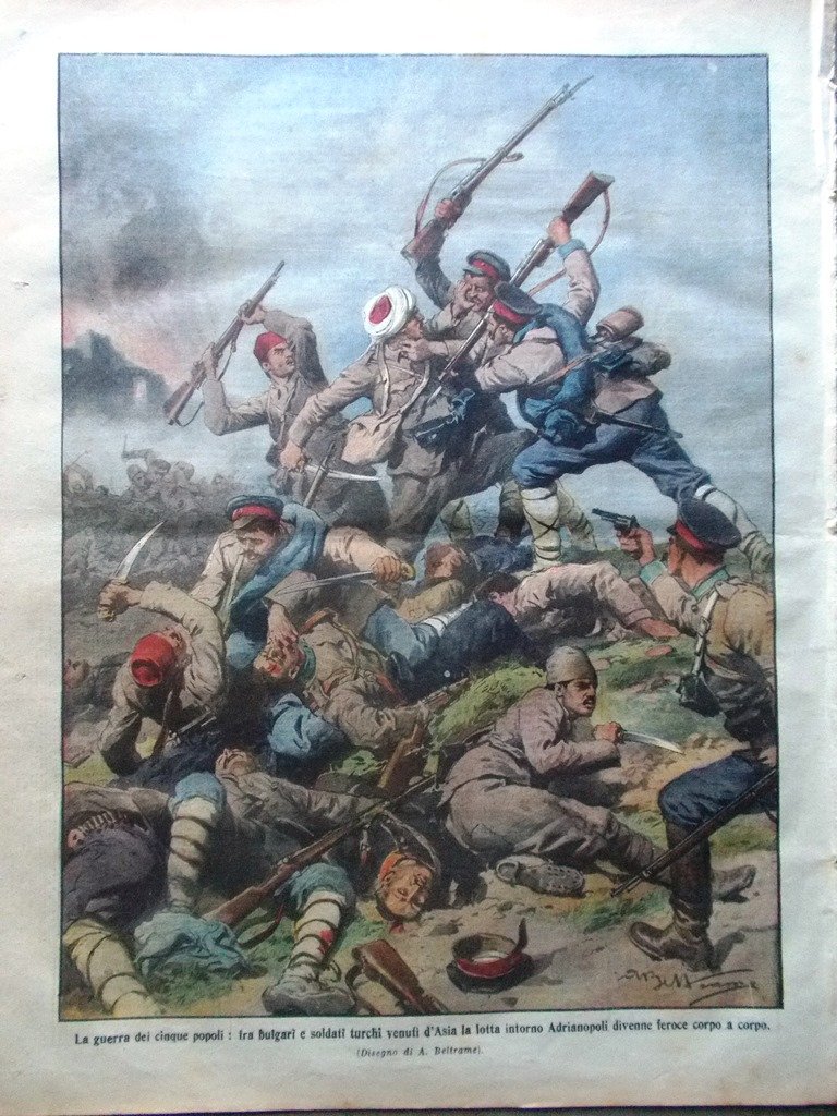 La guerra dei cinque popoli: fra bulgari e soldati turchi venuti dall'Asia la lotta intorno Adrianopoli divenne feroce corpo a corpo (Achille Beltrame)