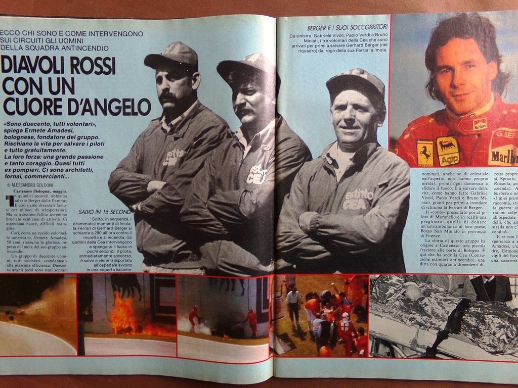 Gli uomini della squadra antincendio che hanno salvato il pilota Gerhard Berger dal rogo della sua Ferrari a Imola