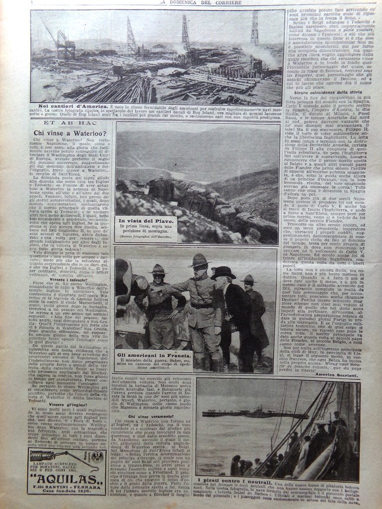 La Domenica del Corriere 12 Maggio 1918 WW1 Piave America Waterloo Raimondi Navi