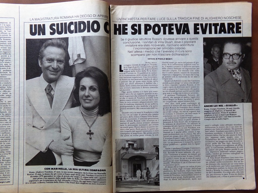 Inchiesta per la tragica fine di Alighiero Noschese: un suicidio che si poteva evitare.