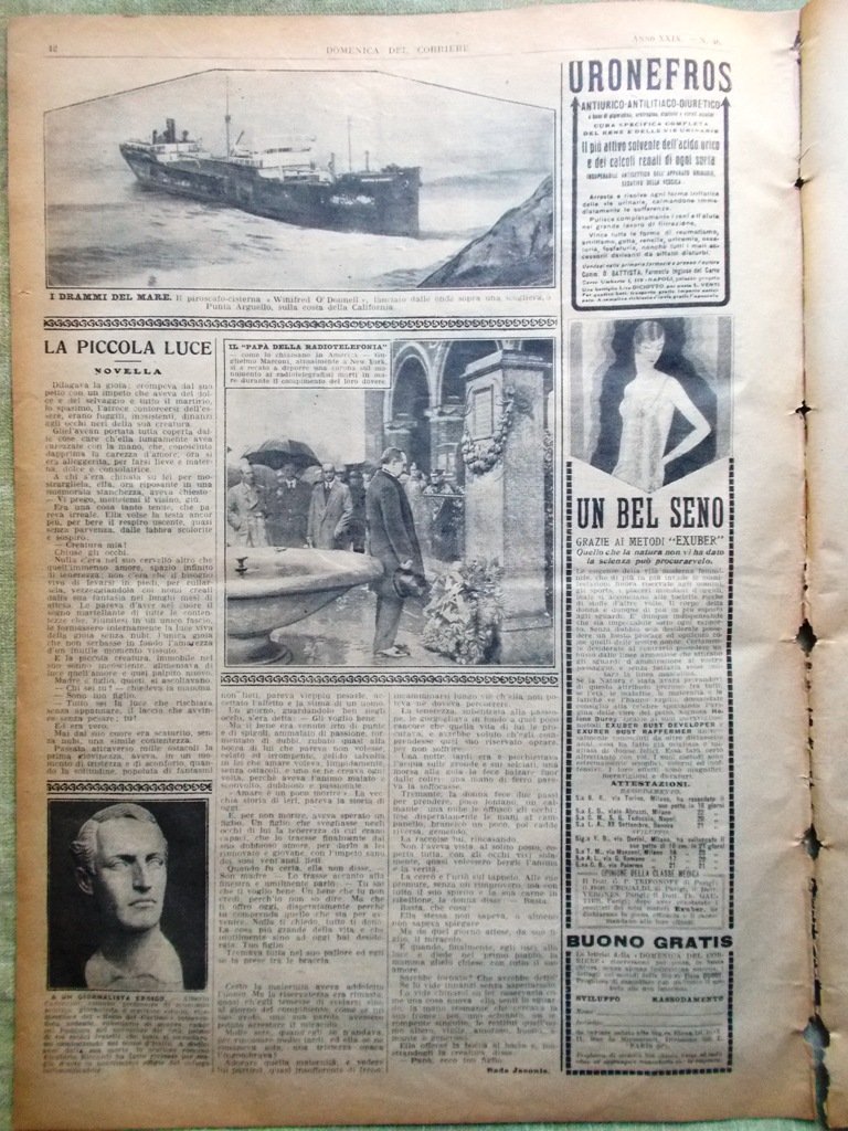 La Domenica del Corriere 13 Novembre 1927 Marconi Annuale Fascista Bergamo Duce