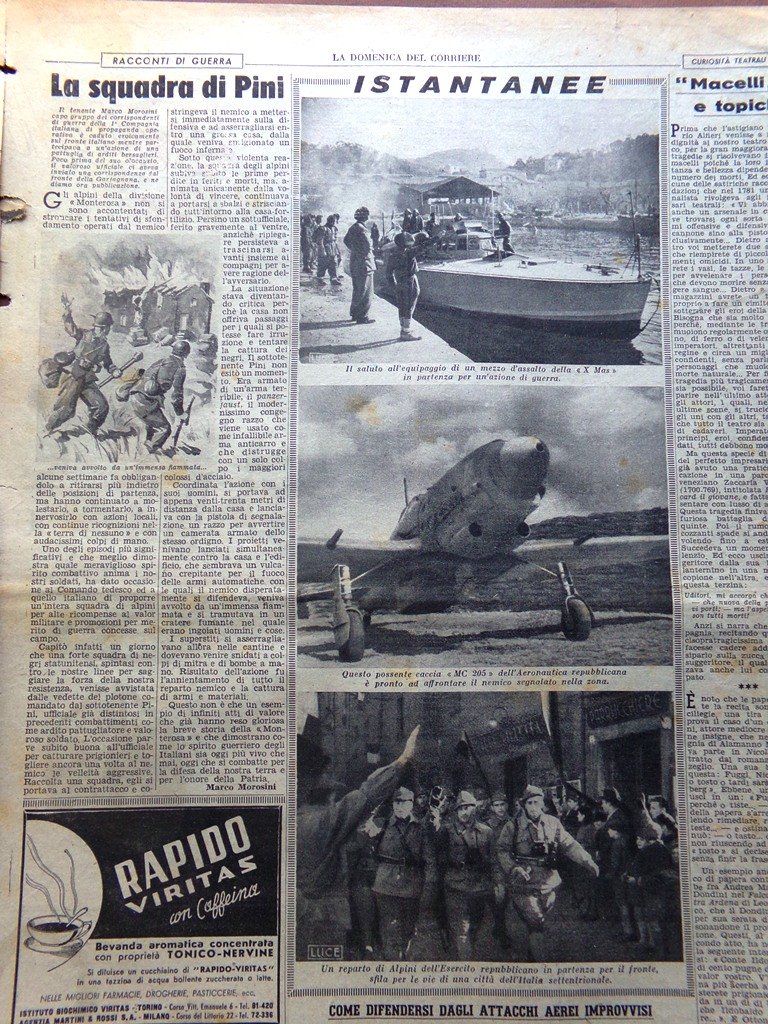 Istantanee: un mezzo d'assalto della X Mas, un reparto di Alpini dell'Esercito