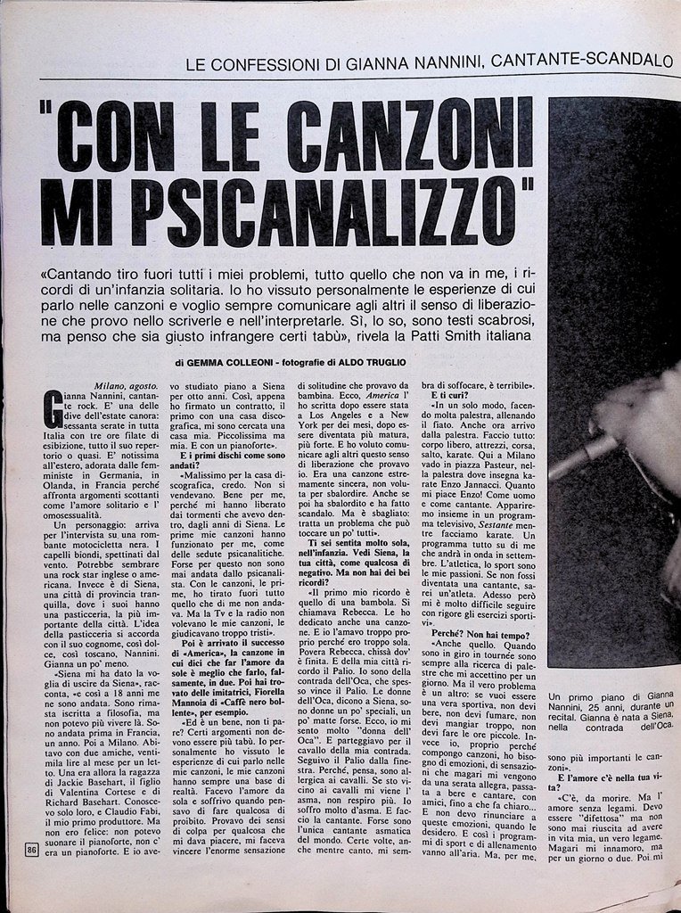 Le confessioni di Gianna Nannini, la cantante-scandalo - «Con le canzoni mi psicanalizzo»