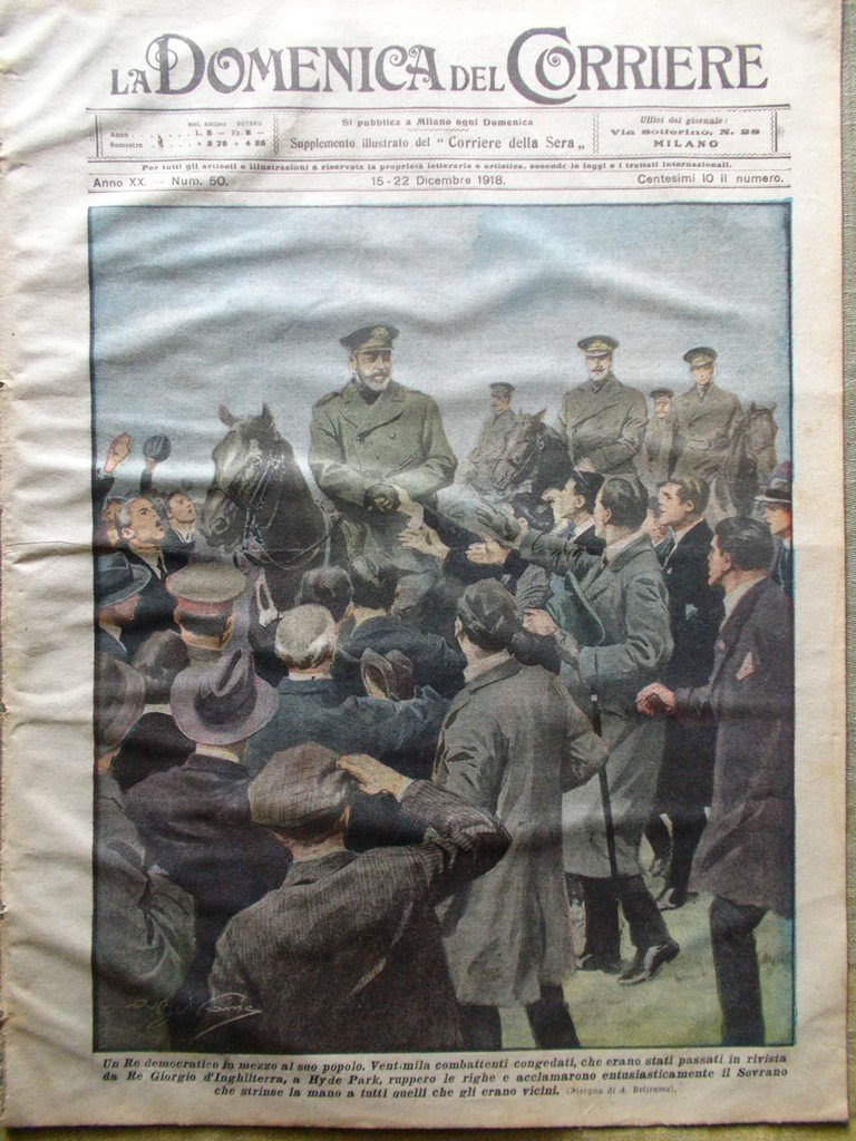 Un Re democratico in mezzo al suo popolo. 20 mila combattenti congedati che erano stati passati in rivista da Re Giorgio d'Inghilterra, a Hyde Park, ruppero le righe e acclamarono entusiasticamente il Sovrano che strinse la mano a tutti quelli che gli erano vicini (Achille Beltrame)