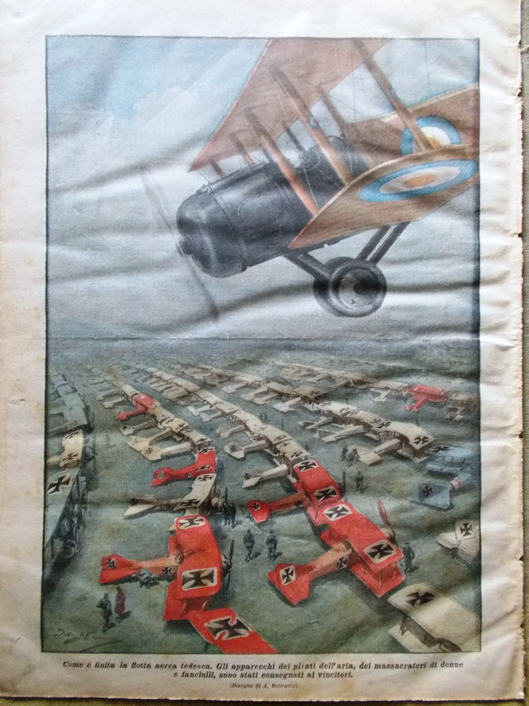 Come è finita la flotta aerea tedesca. Gli apparecchi dei pirati dell'aria, dei massacratori di donne e fanciulli, sono stati consegnati ai vincitori (Achille Beltrame)