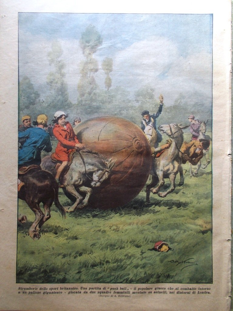 Stramberie dello sport britannico. Una partita di push-ball, il popolare gioco che si combatte intorno a un pallone gigantesco, giocata da due squadre femminili montate su asinelli nei dintorni di Londra (Achille Beltrame)