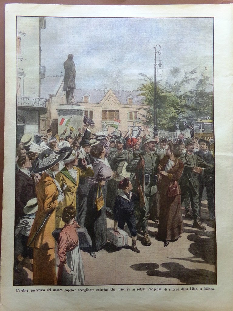 L'ardore guerresco del nostro popolo: accoglienze entusiastiche, trionfali ai soldati congedati di ritorno dalla Libia, a Milano (Achille Beltrame)