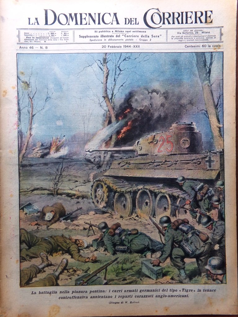 La Domenica del Corriere 20 Febbraio 1944 WW2 Giuramento Barometro Trincea Carri