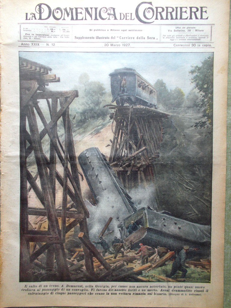 A Demarest, nella Georgia, per cause non ancora accertate, un ponte quasi nuovo crollava al passaggio di un congolio. Vi furono 17 feriti e un morto. Assai drammatico riuscì il salvataggio di 5 passeggeri che erano in una vettura rimasta sul binario (Achille Beltrame)