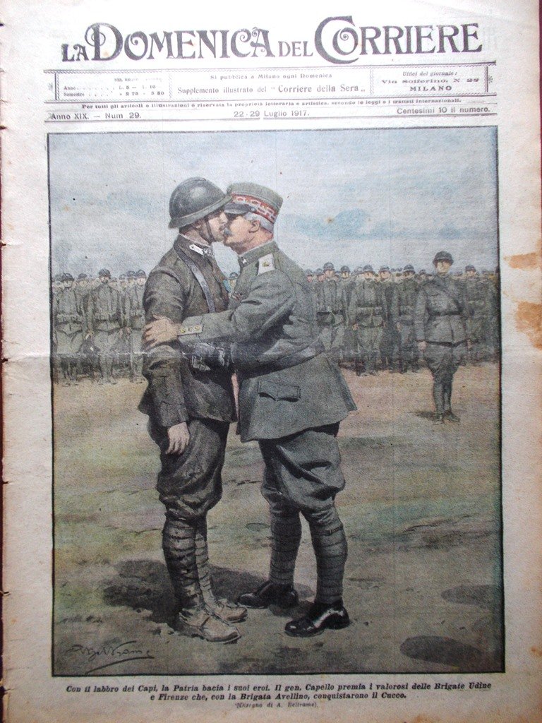 Con il labbro dei Capi, la Patria bacia i suoi eroi. Il gen. Capello premia i valorosi delle Brigate Udine e Firenze che, con la Brigata Avellino, conquistarono il Cucco (Achille Beltrame)