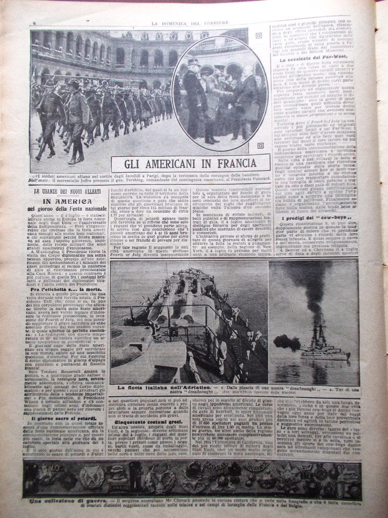 La Domenica del Corriere 22 Luglio 1917 WW1 Capello Pareto Americani in Francia