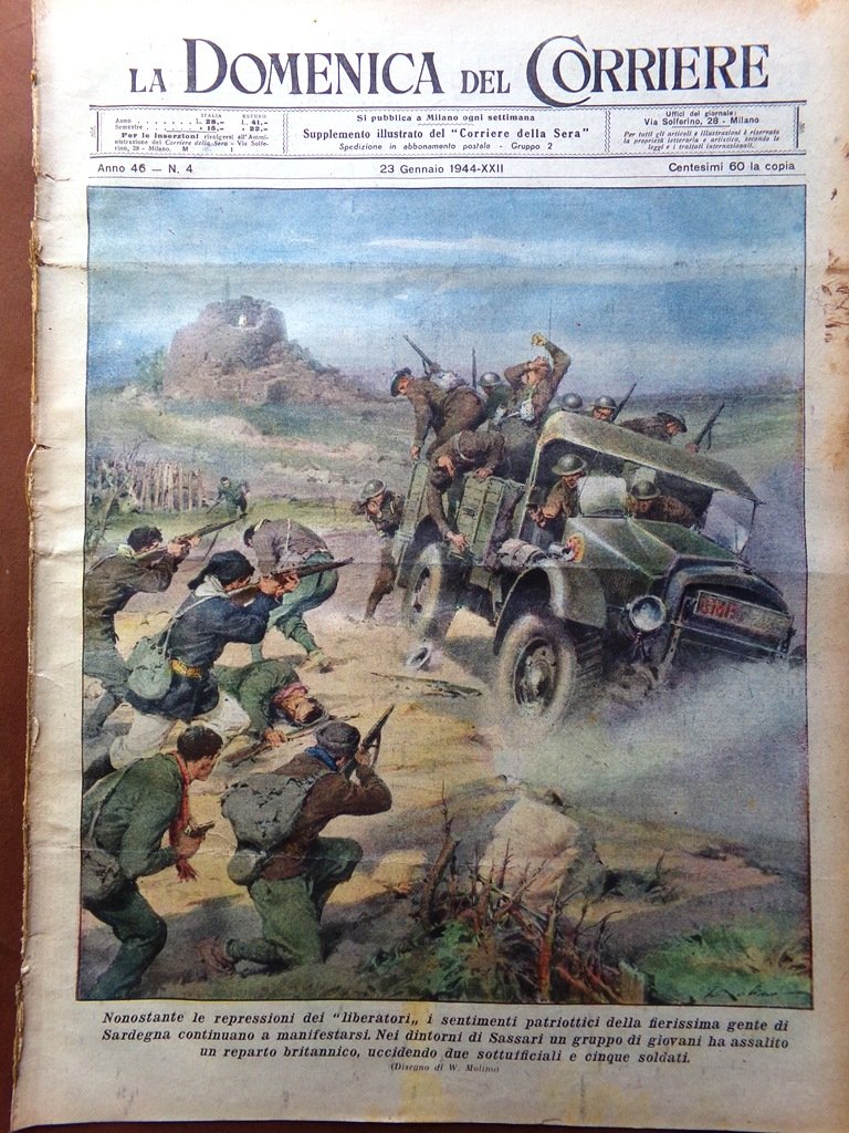 La Domenica del Corriere 23 Gennaio 1944 WW2 Sardegna Abbazia Montecassino Radio