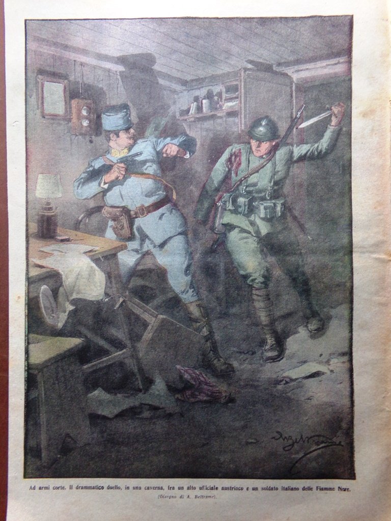 Ad armi corte. Il drammatico duello, in una caverna, fra un alto ufficiale austiraco e un soldato italiano delle Fiamme Nere (Achille Beltrame)