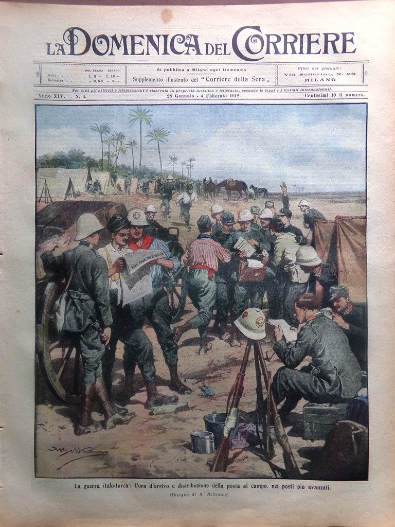 La guerra italo-turca: l'ora d'arrivo e distribuzione della posta al campo, nei posti più avanzati