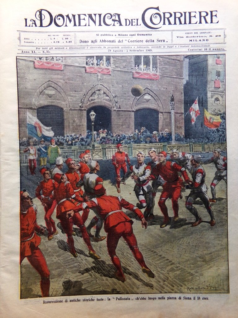 La Domenica del Corriere 29 Agosto 1909 Pallonata Siena Banca Fiume Varo Oceania