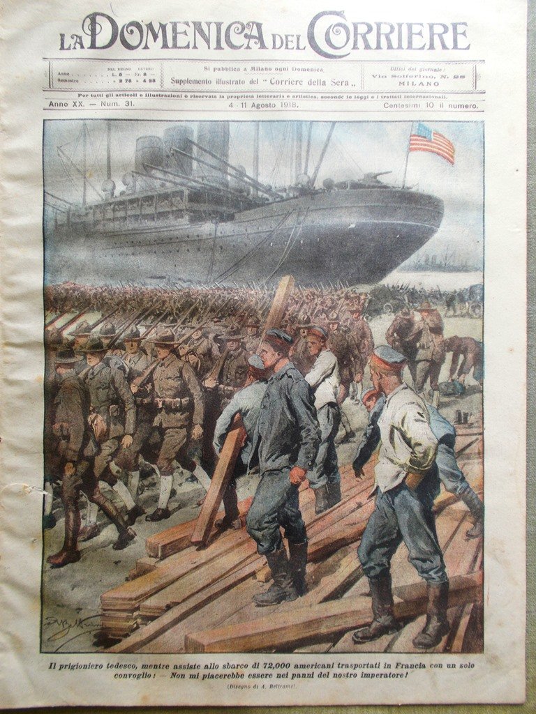 La Domenica del Corriere 4 Agosto 1918 WW1 Zar Nicola Cecoslovacchi Giovani Usa