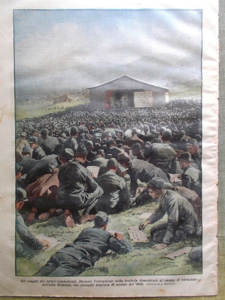 Gli svaghi dei futuri combattenti. Durante l'estrazione della tombola domenicale al campo di istruzione dell'alta Brianza, che accoglie migliaia di reclute del '900 (Achille Beltrame)