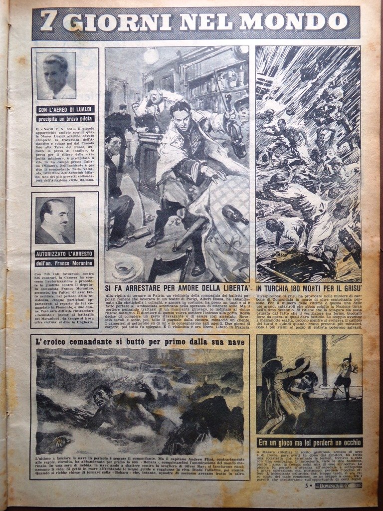 Festival della canzone. A Sanremo si è svolto il quinto concorso destinato a lanciare i "motivi" e i campioni dell'annata. Sono alla ribalta Natalino Otto e Jula de Palma, al pianoforte il popolarissimo maestro Alberto Semprini (Walter Molino)