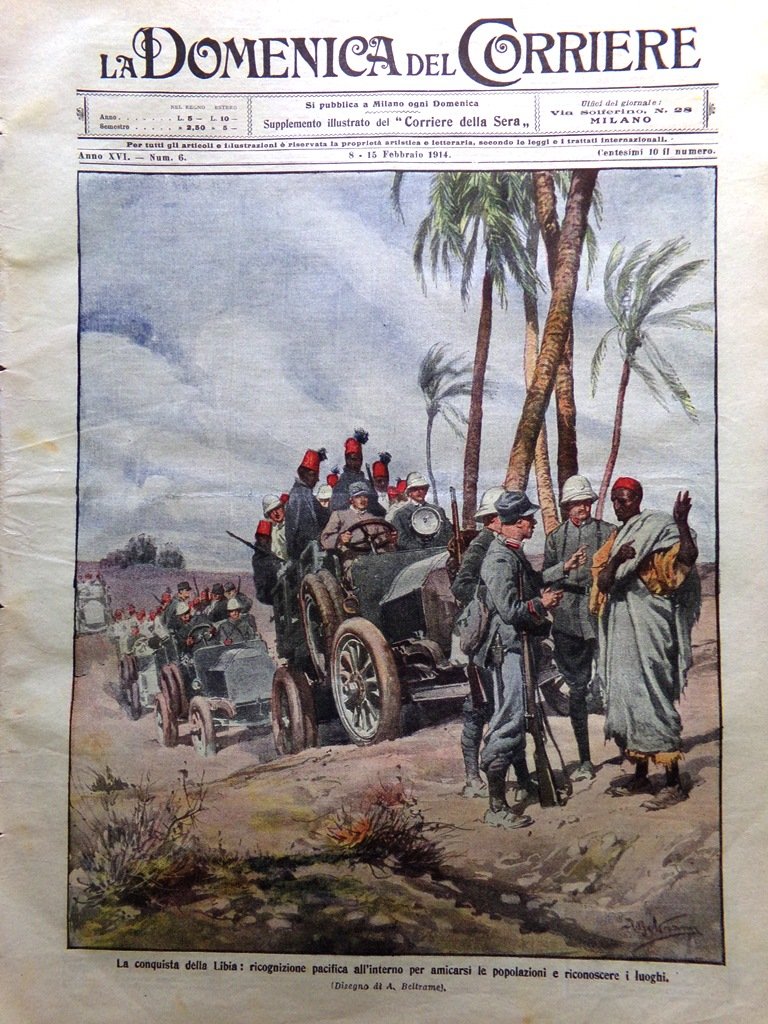 La Domenica del Corriere 8 Febbraio 1914 Libia Jon Bratianu Smareglia D'Annunzio