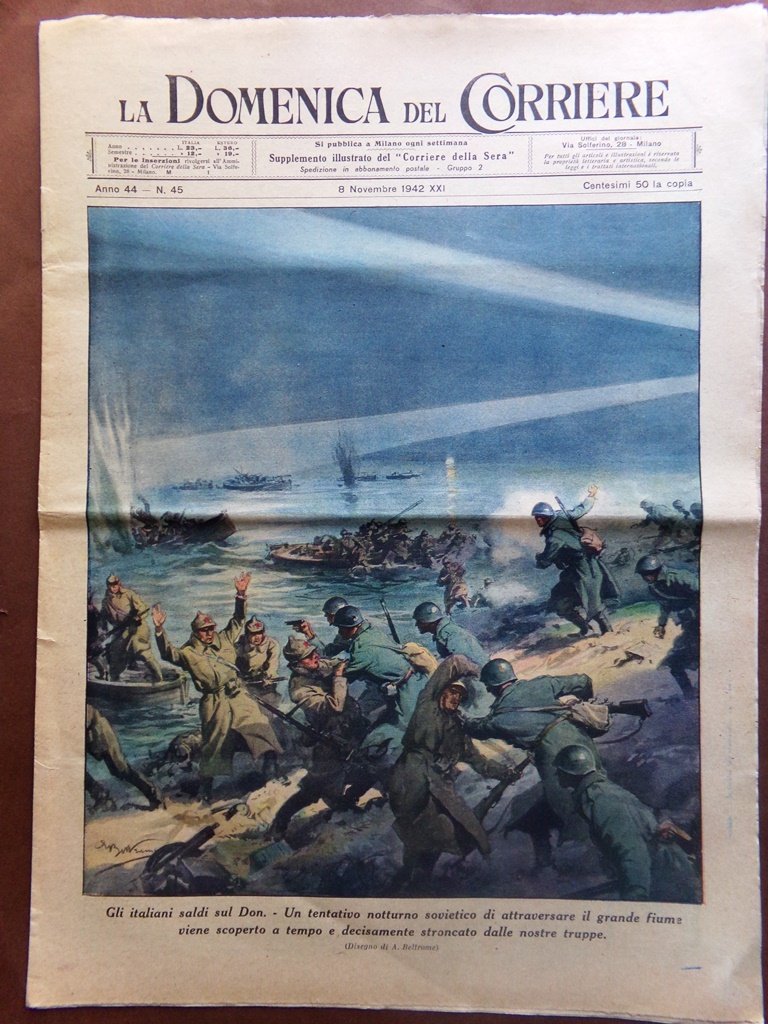 Gli italiani saldi sul Don. Un tentativo notturno sovietico di attraversare il grande fiume viene scoperto a tempo e decisamente stroncato dalle nostre truppe (Achille Beltrame)