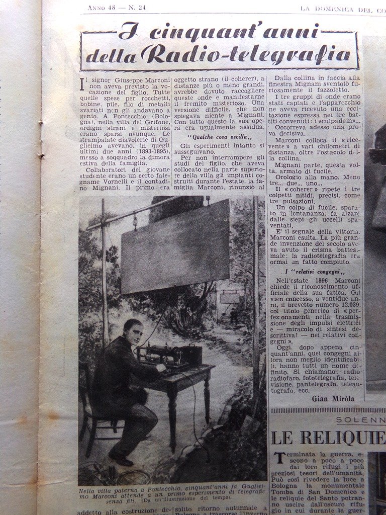 La Domenica del Corriere 8 Settembre 1946 Radiotelegrafia Marconi San Domenico
