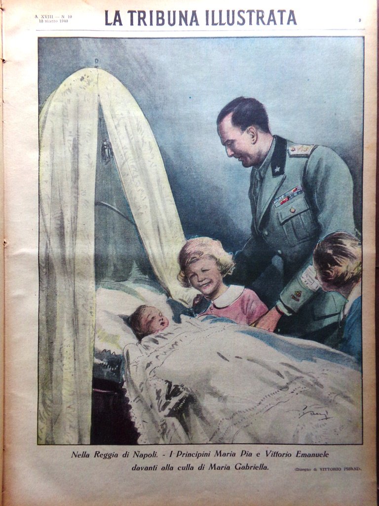 Nella Reggia di Napoli: i principini Maria Pia e Vittorio Emanuele davanti alla culla di Maria Gabriella (disegno di Vittorio Pisani)