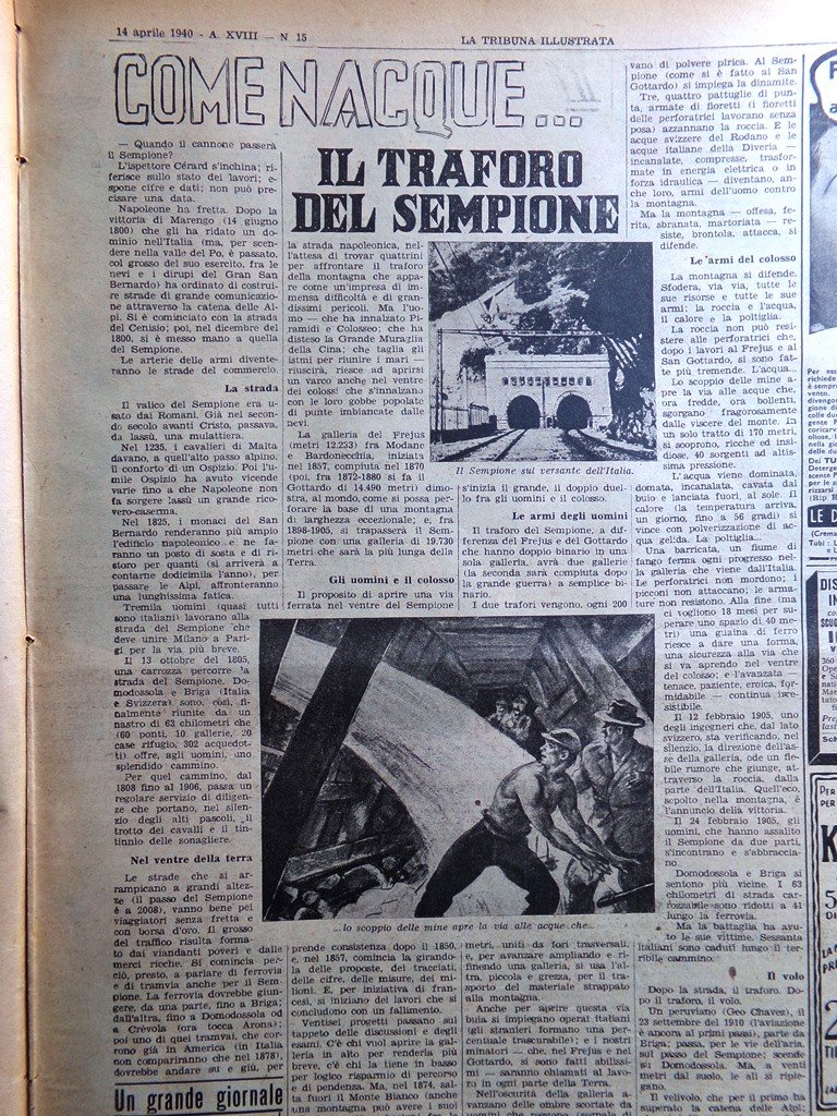 La Tribuna Illustrata 14 Aprile 1940 WW2 Traforo Sempione Rinascita Spagna Boxe