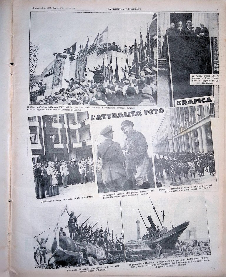 L'attualità fotografica - il duce innanzi ai gerarchi, il duce inaugura Guidonia, il naufragio del piroscafo Huerta