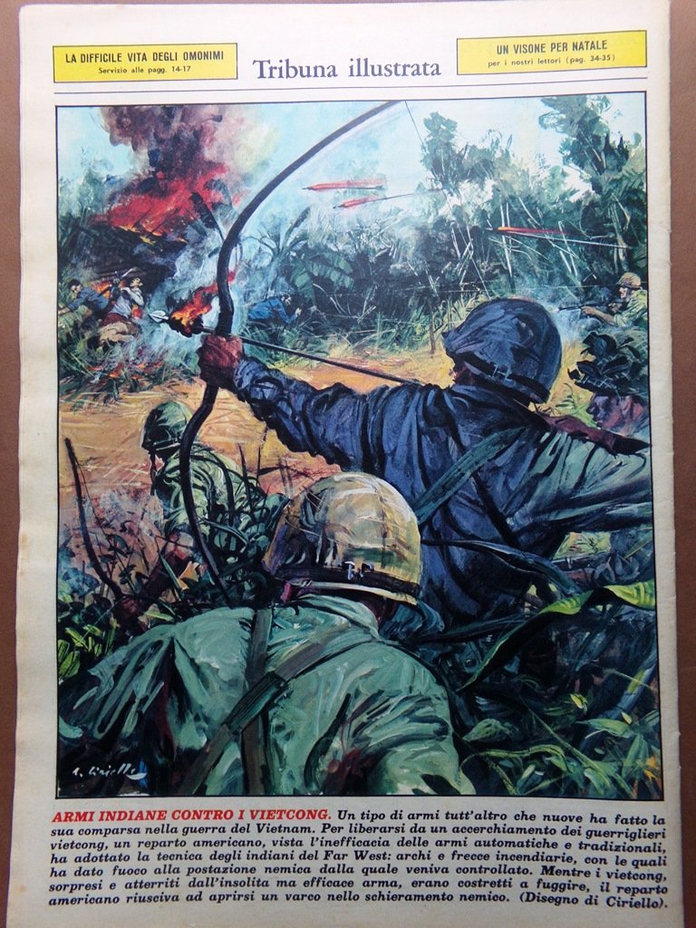 Armi indiane contro i vietcong: un tipo di armi tutt'altro che nuove ha fatto la sua comparsa nella guerra del Vietnam (disegno di Ciriello)