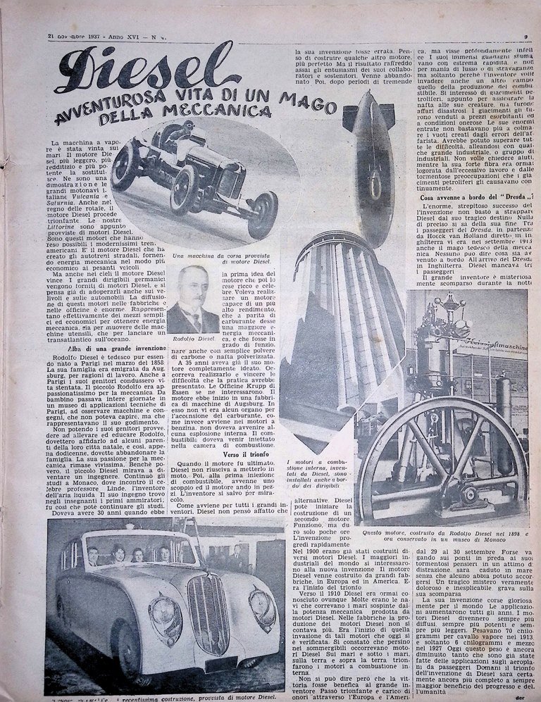 La Tribuna Illustrata 21 Novembre 1937 Rudolf Diesel Rifiuti Tifosi Selvaggina