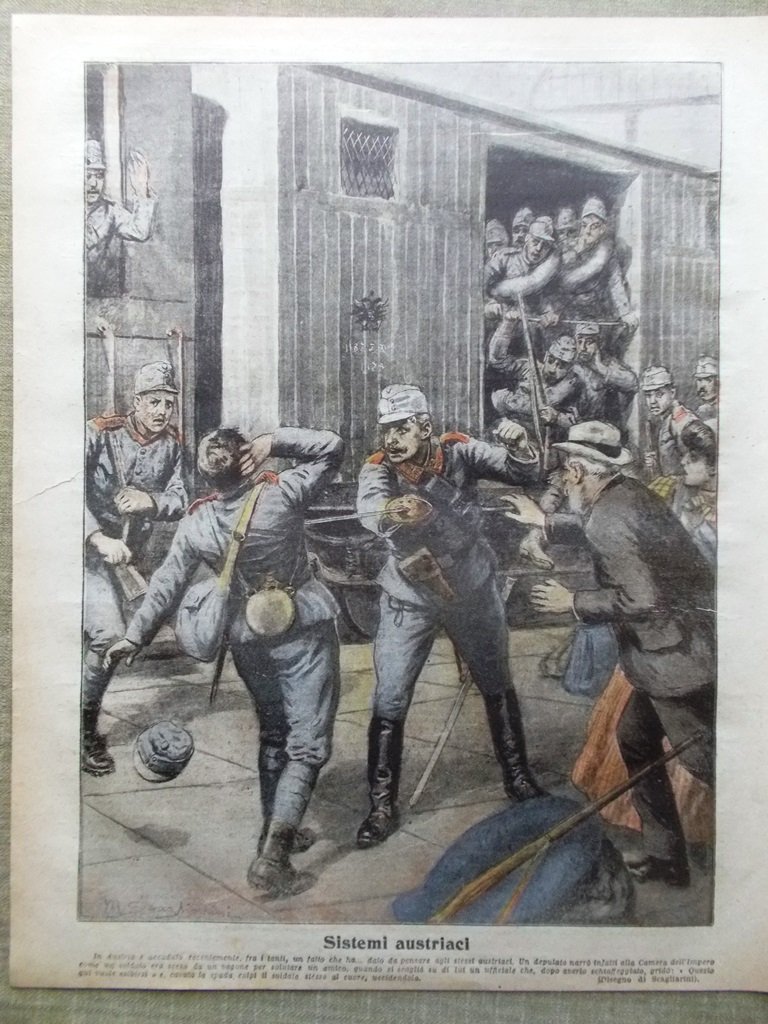 In Austria è accaduto recentemente, fra i tanti, un fatto che ha.dato da pensare agli stessi austriaci. Un deputato narrò infatti alla Camera dell'Impero come un soldato era sceso da un vagone per salutare un amico quando si scagliò su di lui un ufficiale che lo uccise (disegno di Scagliarini)