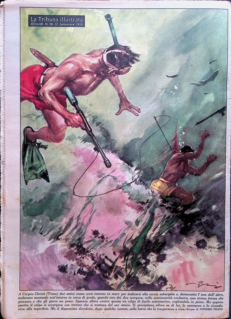 A Corpus Christi (Texas) due amici erano scesi insieme in mare per dedicarsi alla caccia subacquea e, distaccatisi l'uno dall'altro, andavano nuotando tutt'intorno in cerca di preda, quando uno dei due scorgeva, nella semioscurità verdastra, una strana forma che guizzava e che gli parve un pesce. Sparava allora contro questa un colpo di fucile sottomarino, cogliendola in pieno. Ma appena partito il colpo si accorgeva con terrore che si trattava del suo amico. Si precipitava. allora su di lui, lo sosteneva e lo riconduceva alla superficie. Ma il disgraziato decedeva, dopo qualche istante, sulla barca che lo trasportava a riva.