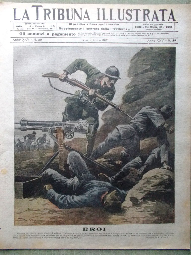 La Tribuna Illustrata 22 Luglio 1917 WW1 Rossoni Cavallotti Isonzo Zucchero Nero
