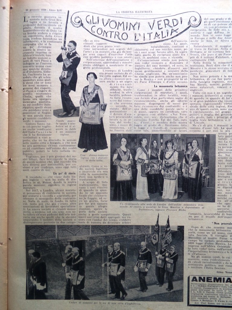 La Tribuna Illustrata 26 Gennaio 1936 Storia Musica Massoneria Svizzera Confine