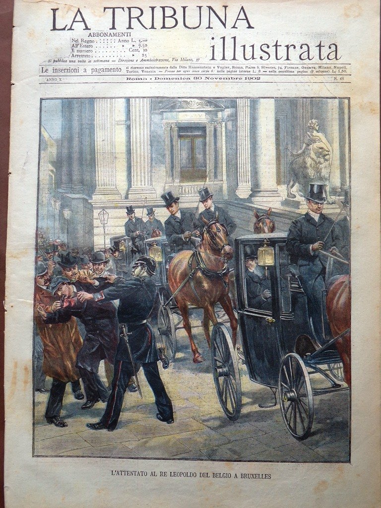 La Tribuna Illustrata 30 Novembre 1902 Attentato Leopoldo Belgio Mafalda Savoia
