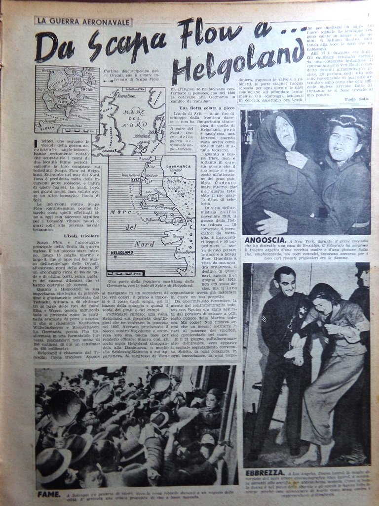 La Tribuna Illustrata 7 Aprile 1940 WW2 Scapa Flow Helgoland Cavalli Stan Laurel