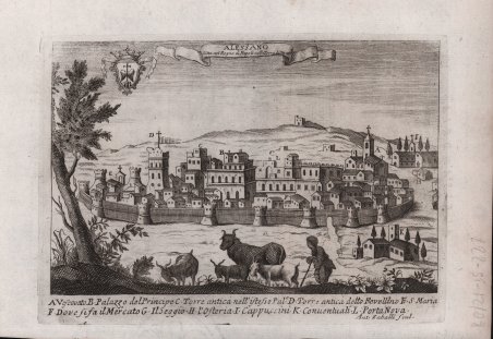 Veduta tratta dal raro “Delle Citta' d'Italia e Sue Isole Adiacenti Compendiose Notizie Sacre, E Profane Compilate Da Cesare Orlandi Nobile Patrizio Di Fermo, Di Atri, E Di Citta' Della Pieve, Accademico Augusto, Errante Già Raffrontato, E Nella Regia Accademia Peloritana De' Pericolanti Di Messina , Detto Lo Svegliato. Dedicate Alla Santità Di N. S. Papa Pio VI”, stampato In Perugia: nella stamperia augusta: presso Mario Riginaldi, 1770-1778. La raccolta riporta informazioni esaustive e schizzi di notevole qualità artistica di molte città italiane e che è stata pubblicata a spezzoni nell'arco di quasi un decennio (1770-1778). L'opera è rimasta incompiuta a causa della morte dell'autore nel 1779, e l'elenco delle città italiane trattate nell'opera va dalla lettera A alla lettera C. L'opera è spesso una preziosa fonte di informazioni per conoscere la struttura, l'ordinamento, l'architettura e la storia delle città italiane fino al Settecento.Incisione in rame, in perfetto stato di conservazione. Veduta tratta dal raro “Delle Citta' d'Italia e Sue Isole Adiacenti Compendiose Notizie Sacre, E Profane Compilate Da Cesare Orlandi Nobile Patrizio Di Fermo, Di Atri, E Di Citta' Della Pieve, Accademico Augusto, Errante Già Raffrontato, E Nella Regia Accademia Peloritana De' Pericolanti Di Messina , Detto Lo Svegliato. Dedicate Alla Santità Di N. S. Papa Pio VI”, stampato In Perugia: nella stamperia augusta: presso Mario Riginaldi, 1770-1778. La raccolta riporta informazioni esaustive e schizzi di notevole qualità artistica di molte città italiane e che è stata pubblicata a spezzoni nell'arco di quasi un decennio (1770-1778). L'opera è rimasta incompiuta a causa della morte dell'autore nel 1779, e l'elenco delle città italiane trattate nell'opera va dalla lettera A alla lettera C. L'opera è spesso una preziosa fonte di informazioni per conoscere la struttura, l'ordinamento, l'architettura e la storia delle città italiane fino al Settecento.Incisione in rame, in perfetto stato di conservazione. Cfr.