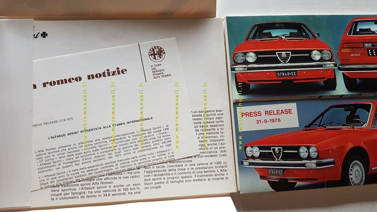 Alfa Romeo Alfasud Sprint 1976 cartella stampa originale auto press kit