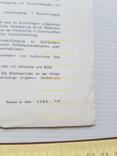 Alfa Romeo Giulia Sprint GTA 1.6 1965 depliant italiano originale