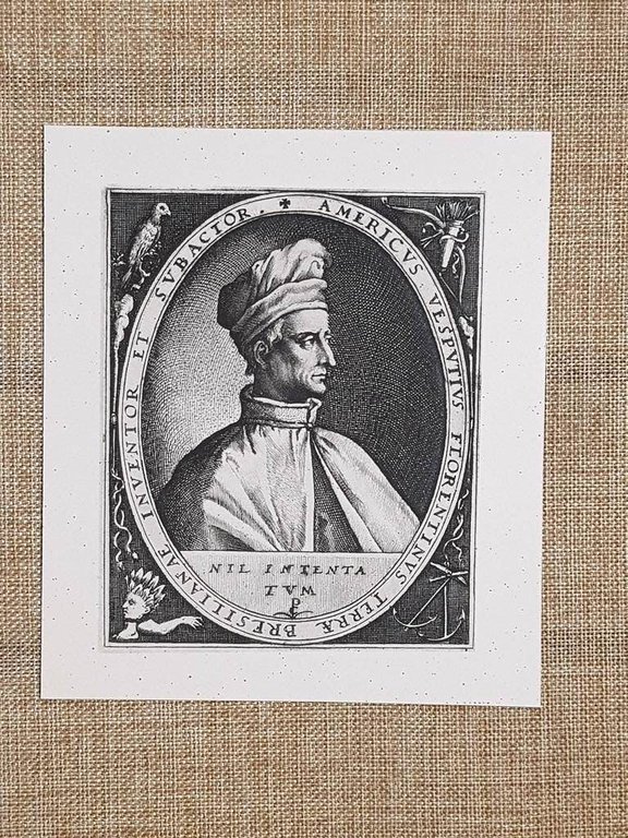 Amerigo Vespucci 1454 - 1512 Esplorazione Nuovo Mondo America Incisione del 1888