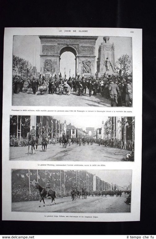 Rara stampa Estratta da pubblicazione del 1922 sulla Prima Guerra Mondiale del 1914-1918. .stampa che ha quindi oltre 95 anni! Rare print Extracted from publication of 1922 about the First World War of 1914 -1918. . press that has so over 95 years! Impression rare Extrait de la publication de 1922 sur la Première Guerre mondiale 1914-1918 . . press qui a tellement plus de 95 ans! Seltene druck Gewonnen aus der Veröffentlichung von 1922 auf dem Ersten Weltkrieg 1914-1918 . . Drücken, die so über 95 Jahren! Le jour de gloire Précédant le défilé militaire, mille mutilés passent les premiers sous l'Arc de Triomphe et devant le Cénotaphe dressé à la mémoire des morts. Le général Pershing, commandant l'armée américaine, ouvre le défilé des Alliés. Le général belge Gillain, son état-major et les drapeaux belges + Le jour de gloire Le général Montuori, en tete des troupes italiennes, salue la tribune d'honneur. Le général de Castelnau. Le maréchal sir Douglas Haig. Les Serbes-Croates-Slovènes arrivant place de l'Opéra Dimensioni Fronte/retro Cm 25,00 x 35,00+Cm 25,00 x 35,00 ADLG - 021 Qualora vogliate delle scansioni migliori contattateci, soddisferemo ogni vostra richiesta. PaypalCarta di creditoBonifico bancario La stampa verrà inserita all'interno di plico di adeguate dimensioni per proteggerne l'integrità