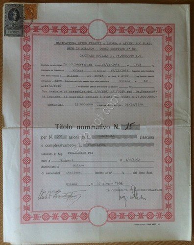 Azioni Shares - Manifattura Mates - 300 Azioni da 10.000 Lire - 1949 - tessile