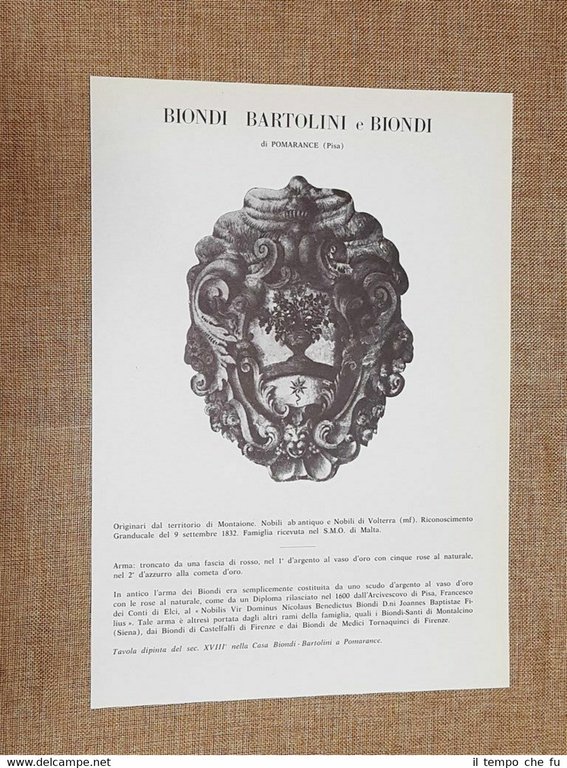 Biondi Bartolini e Biondi di Pomarance Stemma Famiglia Nobile Nobiltà Araldica