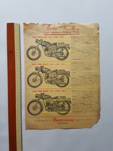 BM Bonvicini Turismo Lusso 100- Turismo 100-125 NSU depliant originale italiano