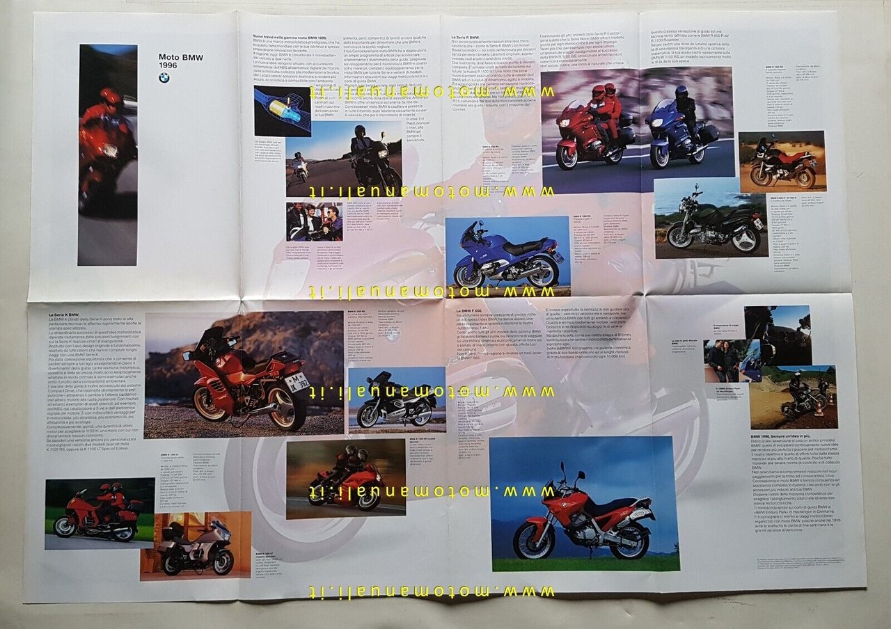 BMW produzione modelli moto 1996 depliant poster originale ITALIANO brochure