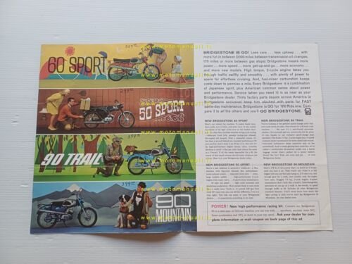 Bridgestone produzione modelli 50 - 60 - 90 1965 depliant USA originale